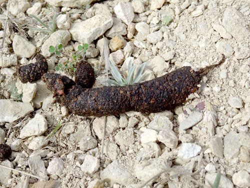 Skunk poop is typically dark in color, cylindrical in shape, and can be up to half an inch in diameter. ...